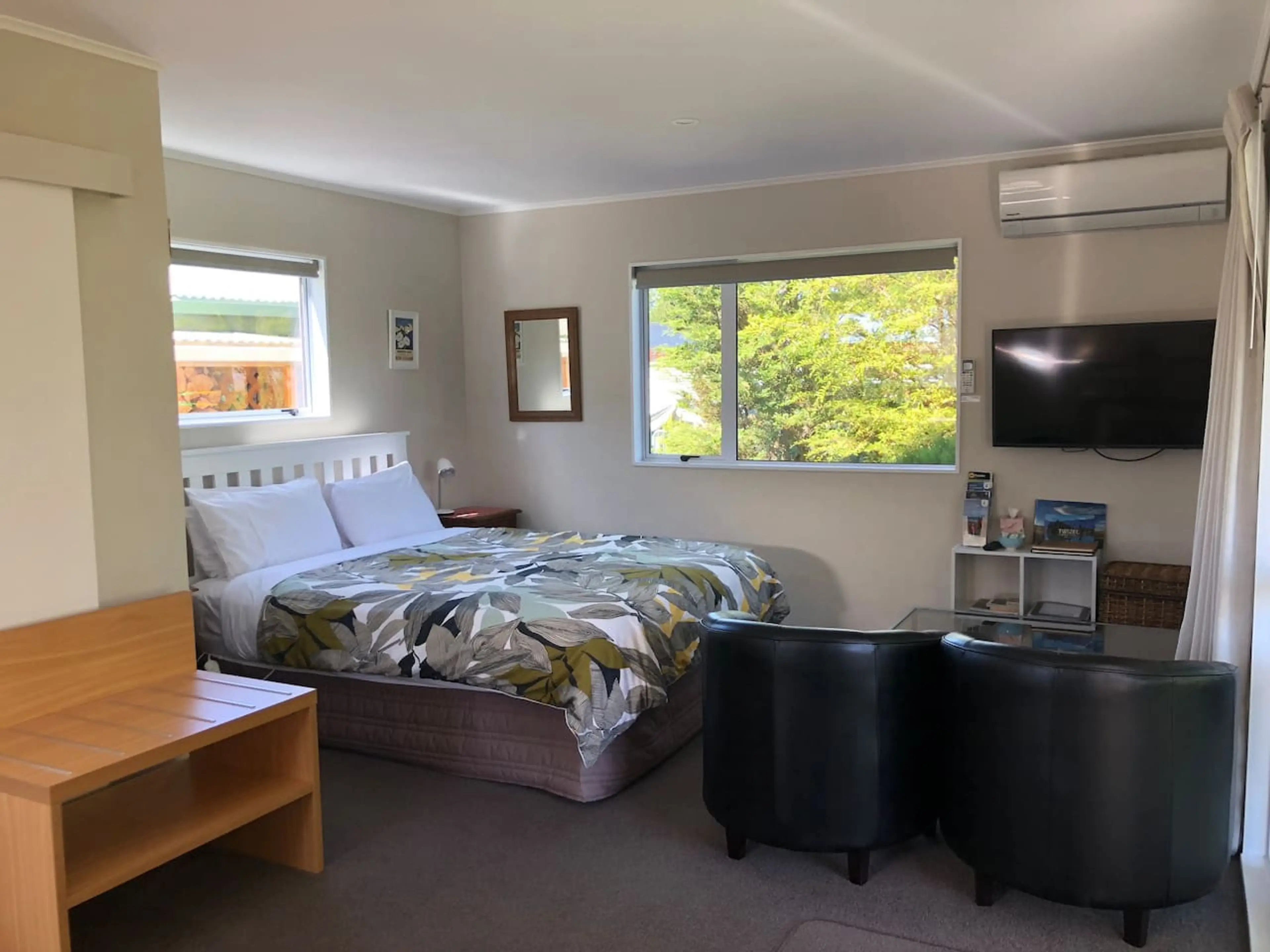 Totara Cottage features a queen bed, cozy chairs, TV, Wifi, and a charming deck perfect for enjoying warm summer evenings. The well-equipped kitchen includes a hob, microwave, and under-bench fridge. The newly renovated bathroom features a shower, toilet, vanity, and heated towel rail. Situated behi...